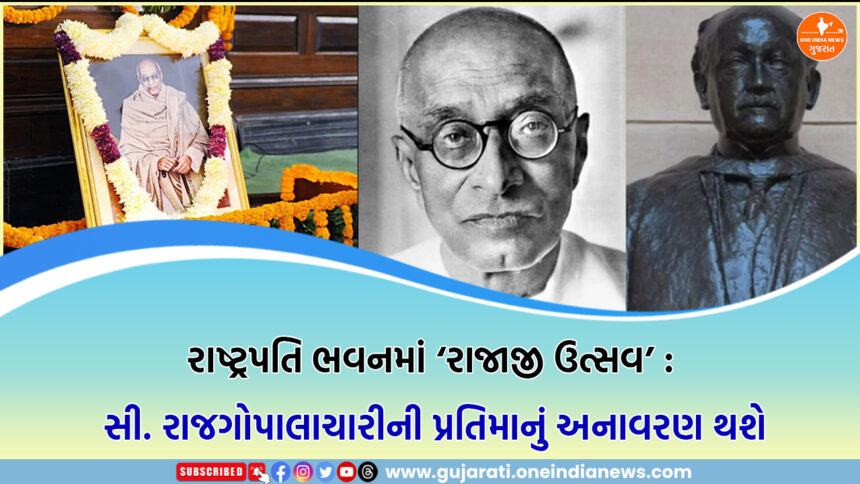 સોમવારે રાષ્ટ્રપતિ ભવન ખાતે ‘રાજાજી ઉત્સવ’નું આયોજન કરવામાં આવશે. આ પ્રસંગે રાષ્ટ્રપતિ ભવન સંકુલના મધ્ય પ્રાંગણમાં સ્વતંત્ર ભારતના પ્રથમ ભારતીય ગવર્નર જનરલ C. Rajagopalachari (રાજાજી)ની પ્રતિમાનું અનાવરણ કરવામાં આવશે. આ કાર્યક્રમને ભારતના સ્વતંત્રતા સંગ્રામ અને રાષ્ટ્રીય વારસાને સમર્પિત એક મહત્વપૂર્ણ પગલા તરીકે જોવામાં આવી રહ્યો છે.