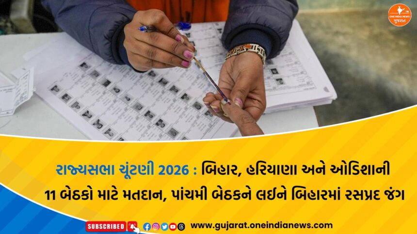 One India News > News > Gujarat > રાજ્યસભા ચૂંટણી 2026 : બિહાર, હરિયાણા અને ઓડિશાની 11 બેઠકો માટે મતદાન, પાંચમી બેઠકને લઈને બિહારમાં રસપ્રદ જંગ