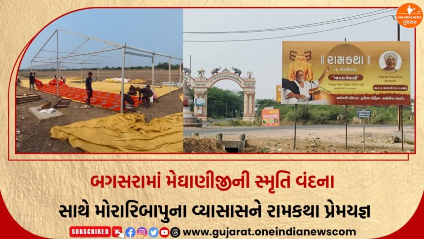 બગસરામાં ઝવેરચંદ મેઘાણીજીની સ્મૃતિ વંદના સાથે મોરારિબાપુના વ્યાસાસને રામકથા પ્રેમયજ્ઞ યોજાનાર છે. આગામી માસે રામકથા ‘માનસ મેઘાણી’ ગાન થશે.