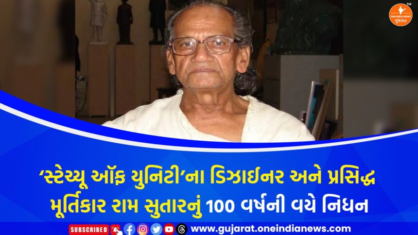 ગુજરાતમાં આવેલી વિશ્વની સૌથી ઊંચી પ્રતિમા ‘સ્ટેચ્યૂ ઑફ યુનિટી’ના ડિઝાઈનર અને દેશના પ્રખ્યાત શિલ્પકાર રામ સુતારનું 100 વર્ષની વયે નિધન થયું છે. તેમના પુત્ર અનિલ સુતારે ગુરૂવારે (18 ડિસેમ્બર) આ દુઃખદ સમાચારની પુષ્ટિ કરતા જણાવ્યું કે બુધવારે (17 ડિસેમ્બર) મોડી રાત્રે નોઈડામાં તેમના નિવાસસ્થાને તેમણે અંતિમ શ્વાસ લીધા હતા. રામ સુતાર છેલ્લા કેટલાક સમયથી વય સંબંધિત બીમારીઓથી પીડાતા હતા. અનિલ સુતારે નિવેદનમાં જણાવ્યું હતું કે, “ખૂબ જ દુઃખ સાથે અમે જણાવીએ છીએ કે મારા પિતા શ્રીરામ વણજી સુતારનું 17 ડિસેમ્બરે મધ્યરાત્રિએ અમારા ઘરે અવસાન થયું.”