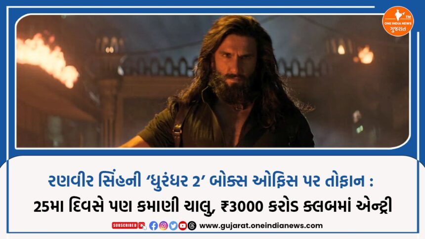 ધુરંધર 2: ધ રિવેન્જ બોક્સ ઓફિસ પર ધમાલ મચાવી રહી છે. આદિત્ય ધર દ્વારા નિર્દેશિત આ સ્પાય થ્રિલર ફિલ્મ રિલીઝના 25મા દિવસે પણ મજબૂત કમાણી કરી રહી છે, જે ફિલ્મની લોકપ્રિયતાનો મોટો પુરાવો છે. ખાસ વાત એ છે કે આ ફિલ્મે માત્ર ભારતમાં જ નહીં, પરંતુ વૈશ્વિક સ્તરે પણ પોતાની મજબૂત હાજરી નોંધાવી છે.