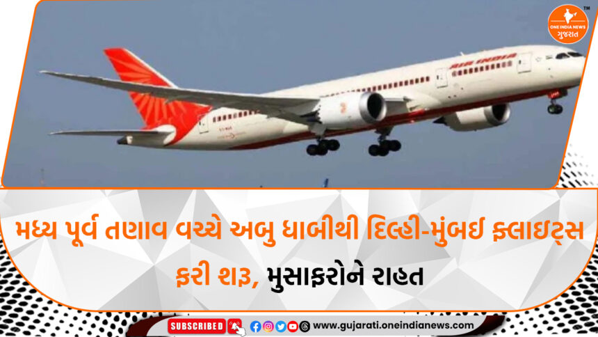 One India News > News > Gujarat > મધ્ય પૂર્વ તણાવ વચ્ચે અબુ ધાબીથી દિલ્હી-મુંબઈ ફ્લાઇટ્સ ફરી શરૂ, મુસાફરોને રાહત