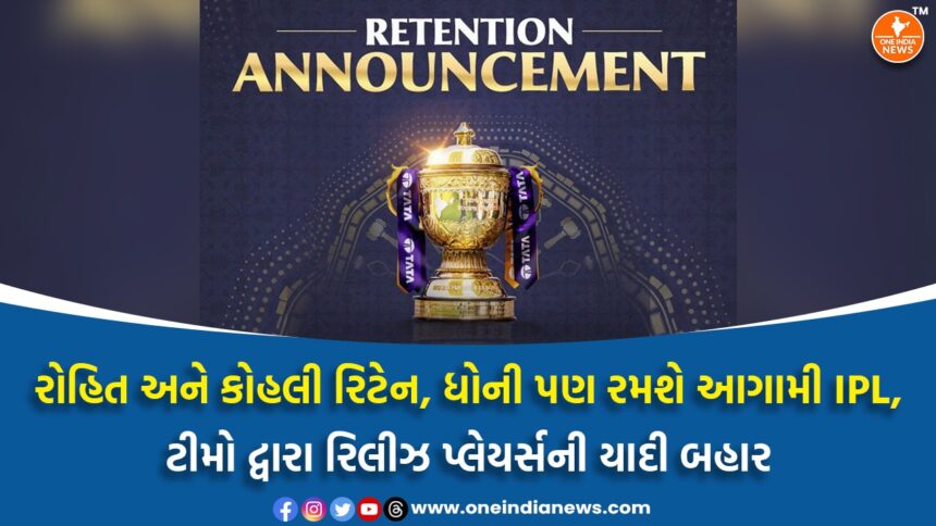 One India News > News > Gujarat > રોહિત અને કોહલી રિટેન, ધોની પણ રમશે આગામી IPL, ટીમો દ્વારા રિલીઝ પ્લેયર્સની યાદી બહાર