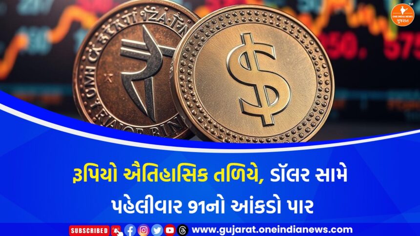 મંગળવારે (16 ડિસેમ્બર) ભારતીય ચલણ રૂપિયામાં ભારે નબળાઈ જોવા મળી હતી. શરૂઆતી કારોબારમાં જ રૂપિયો અમેરિકન ડૉલર સામે પહેલી વખત 91.03ના ઐતિહાસિક નીચલા સ્તરે પહોંચ્યો હતો, જે અત્યાર સુધીનું સૌથી નબળું સ્તર માનવામાં આવે છે. રૂપિયાના આ મોટા ઘટાડાની અસર સીધી રીતે ભારતીય શેરબજાર પર પણ જોવા મળી, જ્યાં શરૂઆતના સેશનમાં જ મુખ્ય સૂચકાંકો પર દબાણ આવ્યું હતું. છેલ્લા કેટલાક દિવસોથી વૈશ્વિક આર્થિક પરિસ્થિતિ અને આંતરરાષ્ટ્રીય વેપાર સંબંધિત અનિશ્ચિતતાના કારણે રૂપિયો સતત દબાણ હેઠળ છે.