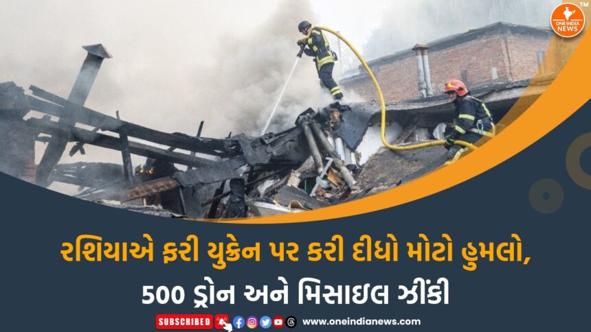 One India News > News > Gujarat > રશિયાએ ફરી યુક્રેન પર કરી દીધો મોટો હુમલો, 500 ડ્રોન અને મિસાઇલ ઝીંકી