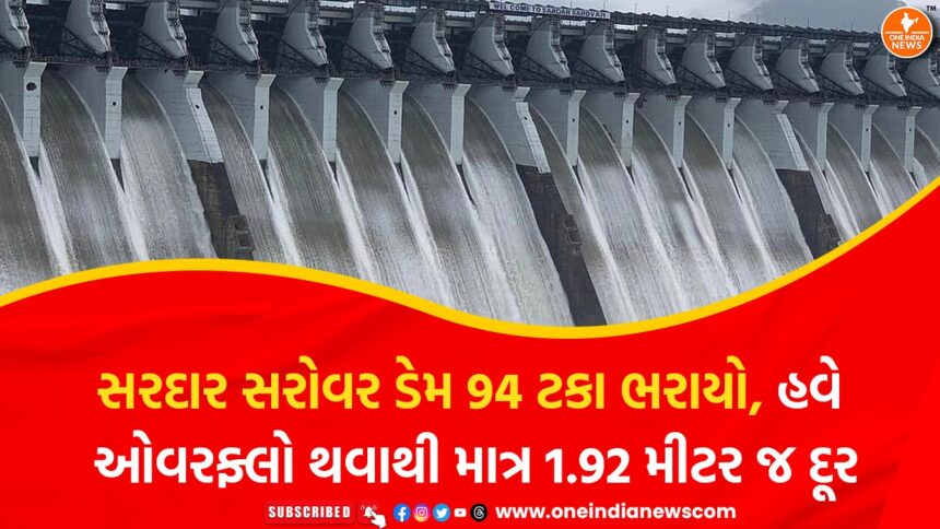 ગુજરાતમાં છેલ્લા કેટલાક દિવસોથી ચાલુ રહેલા ભારે વરસાદને કારણે સરદાર સરોવર નર્મદા ડેમમાં સતત પાણીની આવક વધી રહી છે, જેના કારણે ડેમની જળસપાટી ઝડપથી વધી છે. હાલમાં ડેમ તેની કુલ ક્ષમતાના લગભગ 94 ટકા સુધી ભરાઈ ગયો છે અને માત્ર 1.92 મીટર દૂર છે કે તે ઓવરફ્લો થાય. હાલ ડેમની જળસપાટી 136.76 મીટર સુધી પહોંચી ગઈ છે, જે ખૂબ જ મહત્વપૂર્ણ ગણાય છે. રાજ્યભરમાં વરસાદી માહોલ યથાવત્ છે અને છેલ્લા 24 કલાકમાં 129 તાલુકાઓમાં વરસાદ નોંધાયો છે, જેમાં ખાસ કરીને પંચમહાલ જિલ્લાના હાલોલમાં સૌથી વધુ 9 ઇંચ વરસાદ વરસ્યો હતો. તાપી જિલ્લાના ડોલવણમાં પણ ભારે વરસાદ થયો છે, જ્યાં 6.34 ઇંચ વરસાદ નોંધાયો હતો. માત્ર છેલ્લા 24 કલાકમાં જ સરદાર સરોવર ડેમની સપાટીમાં 24 સેન્ટીમીટરનો વધારો નોંધાયો છે. હાલ ડેમમાં 1,67,113 ક્યુસેક પાણીની આવક થઈ રહી છે, જ્યારે કેનાલોમાંથી 23,501 ક્યુસેક પાણીની જાવક થઈ રહી છે. ડેમનું કુલ ગ્રોસ સ્ટોરેજ 8,850.40 MCM સુધી પહોંચી ગયું છે, જે રાજ્ય માટે પાણી પુરવઠાની દૃષ્ટિએ મોટી રાહતરૂપ છે.