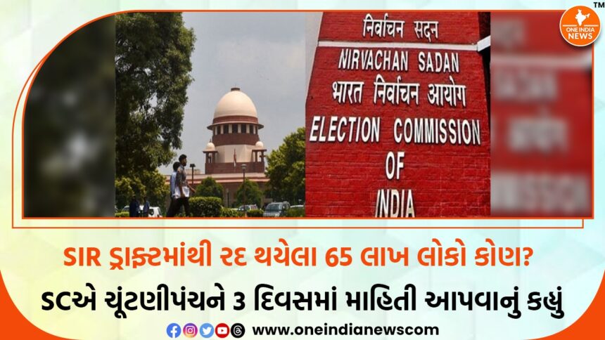 Reading: SIR ડ્રાફ્ટમાંથી રદ થયેલા 65 લાખ લોકો કોણ? SCએ ચૂંટણીપંચને 3 દિવસમાં માહિતી આપવાનું કહ્યું