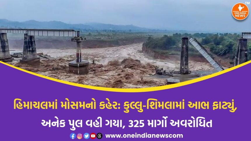કુલ્લુ જિલ્લામાં બુધવારે સાંજે નિરમંડ ઉપમંડળની શ્રીખંડ પહાડી અને બંજાર ઉપમંડળની તીર્થન ખીણની બાથાધ પહાડી પર વાદળ ફાટવાની ઘટના બની. શ્રીખંડ પહાડીમાં વાદળ ફાટવાથી કુરપન રાવી નદીમાં અચાનક પૂરની સ્થિતિ ઊભી થઈ, જેના કારણે બાગીપુલ બજારને તાત્કાલિક ખાલી કરાવવું પડ્યું. એ જ સમયે, શિમલાના રામપુર વિસ્તારના નંટી ગામમાં પણ વાદળ ફાટવાથી એક પુલ ધરાશાયી થઈ ગયો. તીર્થન નદી કિનારે બનેલા કેટલાક કૉટેજોને ગંભીર નુકસાન થયું, સાથે જ અમુક વાહનો પાણીના પ્રવાહમાં વહી ગયા. કુલ્લુના ડેપ્યુટી કમિશનર તોરલ એસ. રવિએ જણાવ્યું કે પ્રશાસન અને બચાવ દળો ઝડપથી ઘટનાસ્થળે પહોંચી ગયા છે અને નુકસાનનું મૂલ્યાંકન ચાલી રહ્યું છે. સદભાગ્યે, અત્યાર સુધી કોઈ જાનહાનિ નોંધાઈ નથી.