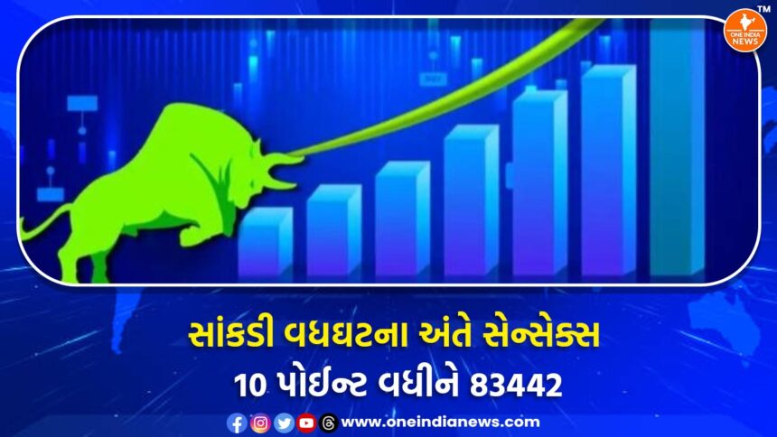 બજારનું મુખ્ય ઈન્ડેક્સ સેન્સેક્સ આજે 83,517ની ઉંચાઈ અને 83,262ની નીચાઈ વચ્ચે અથડાઈ પછી માત્ર 9.61 પોઈન્ટના વધારા સાથે 83,442.50 પર બંધ રહ્યો, જ્યારે નિફ્ટી 50 સ્પોટ ઈન્ડેક્સ પણ 25,490થી 25,407 વચ્ચે ટ્રેડ થયા પછી 0.30 પોઈન્ટના નગણ્યા વધારા સાથે 25,461.30 પર બંધ થયો. સપાટ સ્થિતિ છતાં બજારના અંદરના સેક્ટરોમાં તીવ્ર ગતિશીલતા રહી.