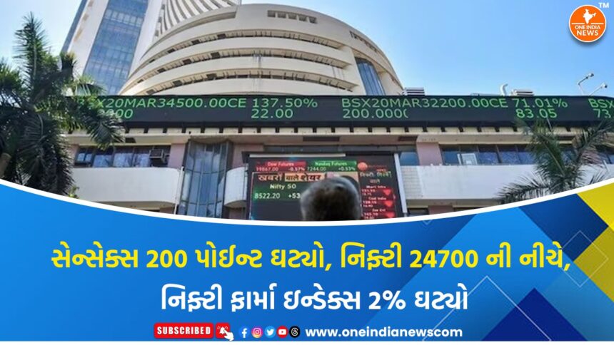 આજે બજાર ઘટાડા સાથે શરૂ થયું. સેન્સેક્સ 128.01 પોઈન્ટ એટલે કે 0.16 ટકાના ઘટાડા સાથે 81,057.57 પર ટ્રેડ કરી રહ્યો છે. જ્યારે નિફ્ટી 56.85 પોઈન્ટ એટલે કે 0.23 ટકાના ઘટાડા સાથે 24,711.80 પર ટ્રેડ કરી રહ્યો છે.