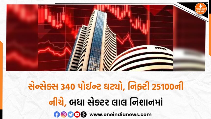 બીજી તરફ, નિફ્ટીમાં આજે ઘટાડા સાથે શરૂઆત થઈ. પ્રી-ઓપનિંગ સેશનમાં જ -60 પોઈન્ટનો ઘટાડો નોંધાયો અને શરૂઆતના 9 સેકન્ડમાં જ નિફ્ટી -231 પોઈન્ટ સુધી લપસી ગયો હતો. જો કે અંતિમ પ્રી-ઓપન સેટલમેન્ટ 25,104.80 પર નોંધાયું, જે 66.35 પોઈન્ટ અથવા 0.25%નો ઘટાડો દર્શાવે છે. ખુલ્યા બાદ નિફ્ટી 77 પોઈન્ટ ઘટીને 25,084 આસપાસ ટ્રેડ થયો જ્યારે સેન્સેક્સ 209 પોઈન્ટ ઘટીને 81,876 પર જોવા મળ્યો. ટેક્નિકલ ચાર્ટ્સ મુજબ 25,100 Call Strike પર Open = High જોવા મળ્યું છે, જે દર્શાવે છે કે મંદીવાળાઓ નિફ્ટીને 25,100ની ઉપર જવા દેવા માટે રોકાણકારો પર દબાણ બનાવી શકે છે. એટલા માટે શક્યતા છે કે આજનો ટ્રેડિંગ દિવસ નિફ્ટી મુખ્યત્વે 25,000 થી 25,100 વચ્ચે અટવાઈ રહે.