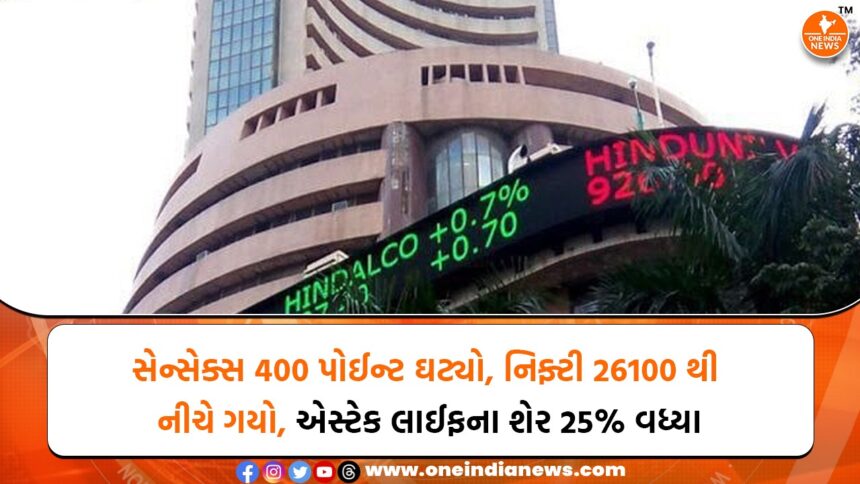 આજે બજારમાં મિશ્ર વલણ જોવા મળ્યું જ્યાં ખાસ કરીને ઓટો સેક્ટરે મજબૂત પ્રદર્શન કર્યું અને ઇન્ડેક્સને સપોર્ટ આપ્યો. ઓટો શેરોમાં તેજીથી ઇન્ડેક્સ અડધા ટકા સુધી વધ્યો હતો, જેમાં આઇશર મોટર્સ અને મહિન્દ્રા એન્ડ મહિન્દ્રા ટોચના ગેનર્સ બન્યા. FMCG અને ફાર્મા સેક્ટરમાં પણ ખરીદી જોવા મળી, જ્યારે બીજી તરફ રિયલ્ટી, આઇટી અને PSU બેંકિંગ શેરો નબળાઈ સાથે ટ્રેડ થયા. માર્કેટમાં એક મહત્વનું વિકાસ એ રહ્યું કે બીટા ડ્રગ્સને SME પ્લેટફોર્મમાંથી ટ્રાન્સફર કર્યા બાદ હવે તે NSE ના મુખ્ય બોર્ડ પર લિસ્ટ થશે. ગિફ્ટ નિફ્ટી, એશિયન બજારો અને વૈશ્વિક દબાણને કારણે ભારતીય બજાર પ્રારંભિક સેશનમાં નબળો રહ્યો, જ્યાં સેન્સેક્સ 230 પોઈન્ટ નીચે અને નિફ્ટી 26,100 નજીક ખૂલ્યો. પ્રી-ઓપન સેશનમાં નિફ્ટીમાં 300 પોઈંટ સુધીનો ઘટાડો જોવા મળી ચૂક્યો હતો, પરંતુ ત્યારબાદ થોડો રિકવરી જોવા મળ્યો, જે દર્શાવે છે કે આજે સેશનમાં મંદીનું દબાણ હજી હાવી રહેશે. નિફ્ટીમાં TCS, એશિયન પેઇન્ટ્સ, NTPC અને મેક્સ હેલ્થકેર ગેનર્સમાં રહ્યા જ્યારે હિન્ડાલ્કો, શ્રીરામ ફાઇનાન્સ, ટાટા સ્ટીલ, ICICI બેંક અને રિલાયન્સ ઈન્ડસ્ટ્રીઝ પર ફ્લેટથી નેગેટિવ ટ્રેડિંગ દબાણ રહ્યું.