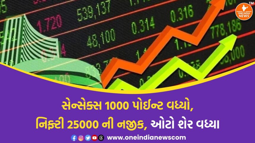 મેક્રો સ્તરે જોવામાં આવે તો, આજે બજાર માટે સારા સમાચારની સરવાણી જોવા મળી રહી છે. બજાર મજબૂત ગેપ-અપ સાથે ખુલ્યું. સેન્સેક્સ 898.47 પોઈન્ટ વધીને 81,562.07 પર પહોંચ્યો અને નિફ્ટી 316.35 પોઈન્ટ વધીને 24,945.45 પર ટ્રેડ થઈ રહ્યો છે. પ્રી-ઓપનિંગ સેશનમાં જ નિફ્ટીમાં 434 પોઈન્ટનો મોટો ગેપ જોવા મળ્યો હતો. આવા મોટા ગેપ-અપ પર ઘણીવાર બજાર ખુલ્યા પછી થોડી નફા વસૂલાત જોવા મળે છે અને ગેપ કવર થતો હોય છે, તેથી રોકાણકારો માટે સાવધાની જરૂરી છે.