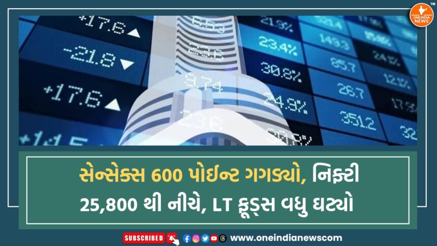નિફ્ટી પર 25,750 અને 25,700 સ્ટ્રાઇક પ્રાઇસ પર કોલ રાઇટિંગ 2000% થી વધુ વધવાથી આ બંને લેવલ મજબૂત રેસિસ્ટન્સ ઝોન તરીકે ઉભરી આવ્યા છે, જેનાથી બજાર આ લેવલથી ઉપર જવા માટે સંઘર્ષ કરશે. નબળા વૈશ્વિક સંકેતો વચ્ચે ભારતીય માર્કેટ નેગેટિવ ઝોનમાં ખુલ્યો હતો, સેન્સેક્સ 394 પોઈન્ટ ઘટીને 84,716 પર અને નિફ્ટી 125 પોઈન્ટ ઘટીને 25,836 પર ટ્રેડ થઈ રહ્યા હતા, જ્યારે પ્રી-ઓપન સેશનમાં પણ ઘટાડો જળવાયો હતો.