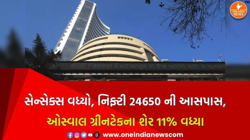 One India News > News > Gujarat > સેન્સેક્સ વધ્યો, નિફ્ટી 24650 ની આસપાસ, ઓસ્વાલ ગ્રીનટેકના શેર 11% વધ્યા