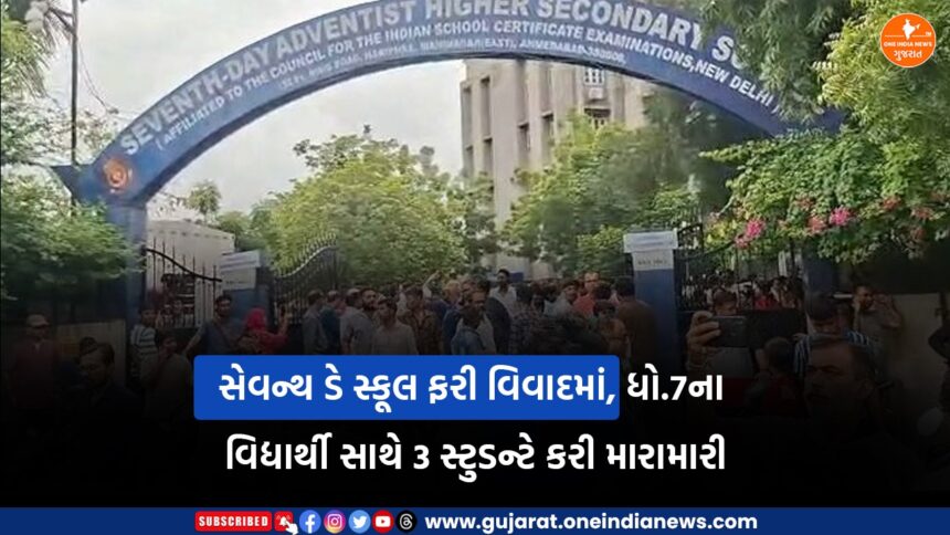 One India News > News > Ahmedabad > સેવન્થ ડે સ્કૂલ ફરી વિવાદમાં, ધો.7ના વિદ્યાર્થી સાથે 3 સ્ટુડન્ટે કરી મારામારી