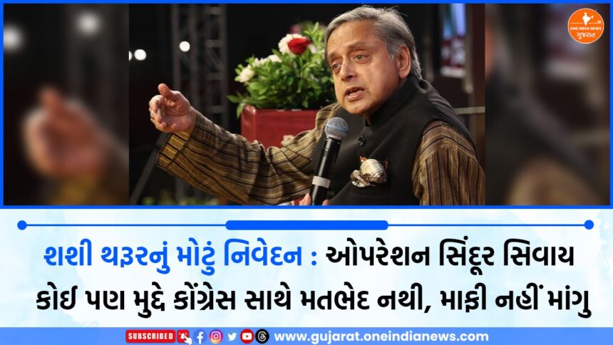 તેમણે ખાસ કરીને ‘ઓપરેશન સિંદૂર’નો ઉલ્લેખ કરતા જણાવ્યું કે, આ એકમાત્ર મુદ્દો હતો, જ્યાં તેમણે પોતાના સૈદ્ધાંતિક વલણ મુજબ પાર્શ્વવલોકન વ્યક્ત કર્યું હતું. પહલગામ હુમલાના સંદર્ભમાં, થરૂરે સ્પષ્ટ કર્યું કે એક લેખક અને નાગરિક તરીકે તેમણે કડક લશ્કરી પ્રતિસાદની હિમાયત કરી હતી, અને આ વલણ માટે કોઈ માફી માંગવાની તૈયારી નથી. તેમણે વધુમાં ઉમેર્યું કે, ભારતનું મુખ્ય લક્ષ્ય વિકાસ હોવું જોઈએ અને દેશને પાકિસ્તાન સાથેના લાંબા સંઘર્ષમાં ફસાવવું નહીં; લશ્કરી કાર્યવાહી માત્ર આતંકવાદી શિબિરો સુધી મર્યાદિત હોવી જોઈએ.