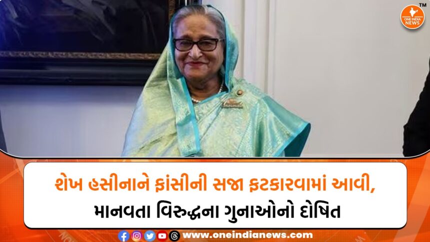 શેખ હસીનાને ફાંસીની સજા ફટકારવામાં આવી છે. બાંગ્લાદેશની ઇન્ટરનેશનલ ક્રાઇમ્સ ટ્રિબ્યૂનલે પૂર્વ વડાપ્રધાન શેખ હસીનાને દોષીત જાહેર કર્યા છે. તેમના ઉપર માનવતા વિરુદ્ધ ગુનાના 5 આરોપ છે.