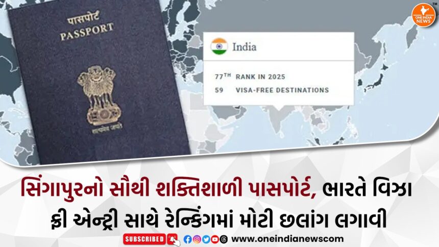 પાસપોર્ટ વિશ્વમાં મુસાફરી માટેનો અગત્યનો દસ્તાવેજ છે, જે દરેક દેશ પોતાના નાગરિકોને વિદેશ યાત્રા માટે આપે છે. દરેક દેશના પાસપોર્ટનું આંતરરાષ્ટ્રીય સ્તરે મહત્વ તેના વિઝા-ફ્રી પ્રવેશની ક્ષમતા પર આધાર રાખે છે. તાજેતરમાં પ્રકાશિત હેનલે પાસપોર્ટ ઇન્ડેક્સ 2025 અનુસાર, ભારતીય પાસપોર્ટની નોંધપાત્ર પ્રગતિ થઈ છે. ભારતે છેલ્લા છ મહિનામાં 8 સ્થાનની છલાંગ લગાવી છે અને હવે તેનો દરજ્જો 85માં ક્રમેથી વધીને 77મો થયો છે.