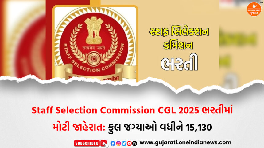 સરકારી નોકરી માટે તૈયારી કરી રહેલા લાખો ઉમેદવારો માટે Staff Selection Commission (SSC) તરફથી મહત્વપૂર્ણ અપડેટ જાહેર કરવામાં આવ્યું છે. SSC Combined Graduate Level Examination (CGL) 2025 ભરતી પ્રક્રિયામાં પદોની સંખ્યામાં વધારો કરવામાં આવ્યો છે.