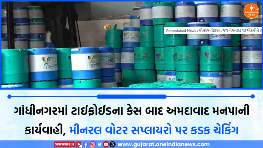 ગાંધીનગરમાં ટાઈફોઈડના કેસ સામે આવતા જ અમદાવાદ મ્યુનિસિપલ કોર્પોરેશન (AMC) હરકતમાં આવી ગઈ છે. રોગચાળો વધુ વકરે નહીં તે માટે મનપા દ્વારા શહેરમાં આરોગ્યલક્ષી કડક કાર્યવાહી શરૂ કરવામાં આવી છે. ખાસ કરીને મીનરલ વોટર જગ સપ્લાયર એકમોને નિશાન બનાવી તપાસ હાથ ધરવામાં આવી છે.