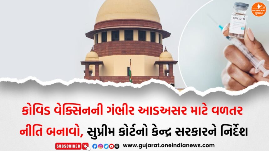 કોવિડ-19 રસીકરણ પછીની ગંભીર આડઅસરોને લઈને Supreme Court of Indiaએ મહત્વપૂર્ણ ટિપ્પણી કરી છે. અદાલતે કેન્દ્ર સરકારને નિર્દેશ આપ્યો છે કે જે લોકો COVID-19 વેક્સિનની ગંભીર આડઅસરોથી પીડાઈ રહ્યા છે, તેમને વળતર આપવા માટે એક સ્પષ્ટ નીતિ તૈયાર કરવામાં આવે. જસ્ટિસ Vikram Nath અને Sandeep Mehtaની બેન્ચે જણાવ્યું કે આ વળતર ‘નો-ફોલ્ટ’ (No-Fault) ધોરણે આપવું જોઈએ.