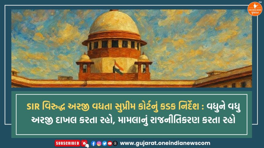 સુપ્રીમ કોર્ટે ચૂંટણી પંચ દ્વારા હાથ ધરવામાં આવેલી ‘સ્પેશિયલ ઇન્ટેન્સિવ રિવિઝન (SIR)’ એટલે કે વિશેષ સઘન સુધારા પ્રક્રિયા અંગે દેશના વિવિધ રાજ્યોમાંથી સતત આવતી અરજીઓ પર કડક રોષ વ્યક્ત કર્યો છે. 9 ડિસેમ્બરના રોજ ચીફ જસ્ટિસ (CJI) સૂર્યકાંત અને ન્યાયમૂર્તિ જોયમાલા બાગચીની બેન્ચે ઉત્તર પ્રદેશ, તમિલનાડુ, પશ્ચિમ બંગાળ, આસામ અને કેરળ જેવા રાજ્યોમાંથી SIRને લગતી અરજીઓ સુનાવણી કરી હતી. બેન્ચે નોંધ્યું કે, વધતી ગયેલી અરજીઓમાં રાજકીય હેતુ વધુ સ્પષ્ટ દેખાય છે અને કેટલીક અરજીઓ માત્ર પ્રસિદ્ધિ મેળવવાના ઉદ્દેશથી દાખલ કરાઈ રહી છે. CJI સૂર્યકાંતે ટિપ્પણી કરીને જણાવ્યું કે, “વધુને વધુ અરજીઓ દાખલ કરતા રહો અને આ મુદ્દાનું રાજનીતિકરણ કરતા રહો,” જે દર્શાવે છે કે સુપ્રીમ કોર્ટ આ મામલે લંબાવા અને રાજકીય હસ્તક્ષેપને રોકવા માટે ચિંતિત છે.