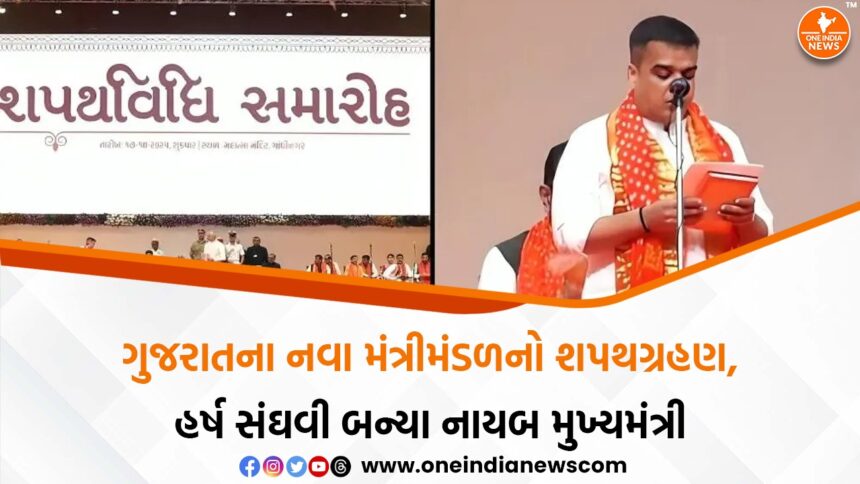 શપથગ્રહણ સમારોહમાં રાજ્યના પૂર્વ ગૃહ રાજ્યમંત્રી હર્ષ સંઘવીએ ગુજરાતના નાયબ મુખ્યમંત્રી (Deputy Chief Minister) તરીકે શપથ લીધો. હર્ષ સંઘવી ગુજરાતના અત્યાર સુધીના સૌથી યુવા નાયબ મુખ્યમંત્રી બન્યા છે. સુરતના લોકપ્રિય યુવા નેતા તરીકે ઓળખાતા હર્ષ સંઘવીને ભાજપ હાઈકમાન્ડે રાજ્યના શક્તિશાળી પદ પર બિરાજમાન કરીને એક મહત્વપૂર્ણ સંદેશ આપ્યો છે.