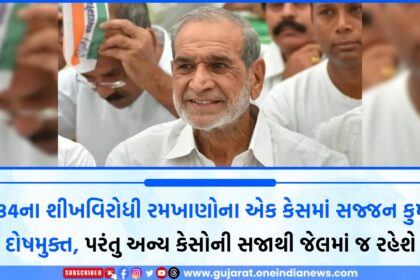 1984ના શીખવિરોધી રમખાણોના એક કેસમાં સજ્જન કુમાર દોષમુક્ત, પરંતુ અન્ય કેસોની સજાથી જેલમાં જ રહેશે