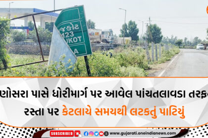 સણોસરા પાસે ધોરીમાર્ગ પર આવેલ પાંચતલાવડા તરફના રસ્તા પર કેટલાયે સમયથી લટકતું પાટિયું