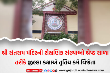 શ્રી સંતરામ મંદિરની શૈક્ષણિક સંસ્થાઓ શ્રેષ્ઠ શાળા તરીકે જીલ્લા કક્ષાએ તૃતિય ક્રમે વિજેતા