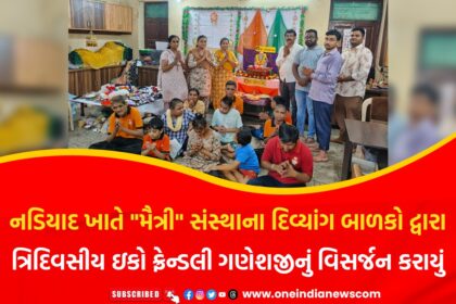 નડિયાદ ખાતે “મૈત્રી” સંસ્થાના દિવ્યાંગ બાળકો દ્વારા ત્રિદિવસીય ઇકો ફ્રેન્ડલી ગણેશજીનું વિસર્જન કરાયું
