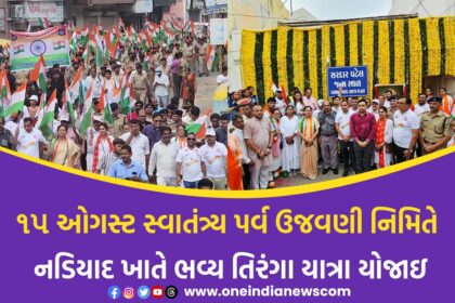 ૧૫ ઓગસ્ટ સ્વાતંત્ર્ય પર્વ ઉજવણી નિમિતે નડિયાદ ખાતે ભવ્ય તિરંગા યાત્રા યોજાઇ