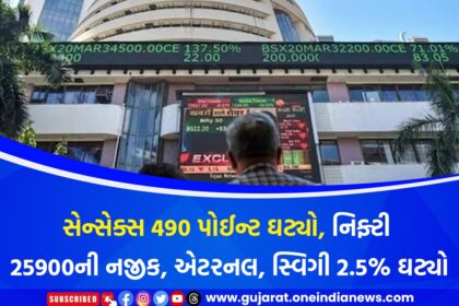 સેન્સેક્સ 490 પોઈન્ટ ઘટ્યો, નિફ્ટી 25900ની નજીક, એટરનલ, સ્વિગી 2.5% ઘટ્યો