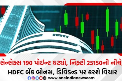 સેન્સેક્સ 190 પોઈન્ટ ઘટ્યો, નિફ્ટી 25150ની નીચે, HDFC બેંક બોનસ, ડિવિડન્ડ પર કરશે વિચાર