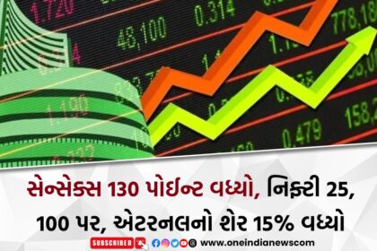 સેન્સેક્સ 130 પોઈન્ટ વધ્યો, નિફ્ટી 25,100 પર, એટરનલનો શેર 15% વધ્યો