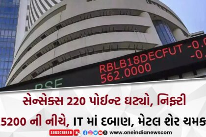 સેન્સેક્સ 220 પોઈન્ટ ઘટ્યો, નિફ્ટી 25200 ની નીચે, IT માં દબાણ, મેટલ શેર ચમક્યા