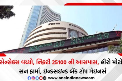 સેન્સેક્સ વધ્યો, નિફ્ટી 25100 ની આસપાસ, હીરો મોટો, સન ફાર્મા, ઇન્ડસઇન્ડ બેંક ટોપ ગેઇનર્સ