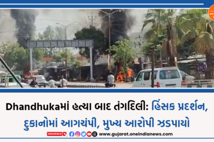 Dhandhukaમાં હત્યા બાદ તંગદિલી: હિંસક પ્રદર્શન, દુકાનોમાં આગચંપી, મુખ્ય આરોપી ઝડપાયો