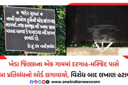 ખેડા જિલ્લાના એક ગામમાં દરગાહ-મસ્જિદ પાસે ગરબા પ્રતિબંધનો બોર્ડ લગાવાયો, વિરોધ બાદ લખાણ હટાવાયું