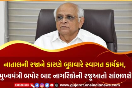 નાતાલની રજાને કારણે બુધવારે સ્વાગત કાર્યક્રમ, મુખ્યમંત્રી બપોર બાદ નાગરિકોની રજૂઆતો સાંભળશે