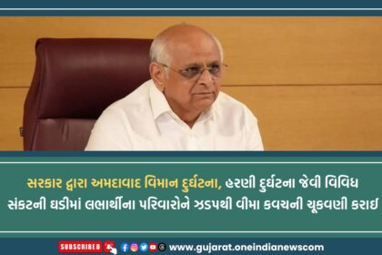 સરકાર દ્વારા અમદાવાદ વિમાન દુર્ઘટના, હરણી દુર્ઘટના જેવી વિવિધ સંકટની ઘડીમાં લભાર્થીના પરિવારોને ઝડપથી વીમા કવચની ચૂકવણી કરાઈ