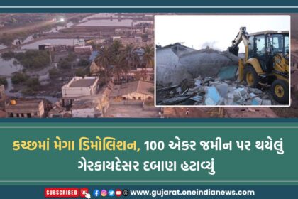 કચ્છમાં મેગા ડિમોલિશન, 100 એકર જમીન પર થયેલું ગેરકાયદેસર દબાણ હટાવ્યું
