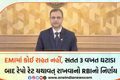 રિઝર્વ બેંક ઓફ ઈન્ડિયા (RBI) દ્વારા આજે જાહેર કરાયેલ મોનેટરી પોલિસી નિવેદન મુજબ, રેપો રેટમાં કોઈ ફેરફાર કરવામાં આવ્યો નથી અને તે 6.50 ટકા પર યથાવત રાખવામાં આવ્યો છે. આ નિર્ણયથી એલાન કરવામાં આવ્યું...