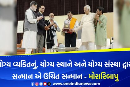 યોગ્ય વ્યકિતનું, યોગ્ય સ્થાને અને યોગ્ય સંસ્થા દ્વારા સન્માન એ ઉચિત સન્માન – મોરારિબાપુ
