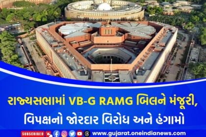 ગુરુવારે મોડી રાત્રે લોકસભામાંથી પસાર થયા બાદ VB-G RAM G બિલને રાજ્યસભાની પણ મંજૂરી મળી ગઈ, પરંતુ આ દરમિયાન વિપક્ષે ઉગ્ર વિરોધ નોંધાવ્યો. રાજ્યસભામાં ચર્ચા દરમિયાન કોંગ્રેસ, ડીએમકે સહિતના વિપક્?...