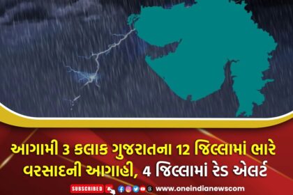 આગામી 3 કલાક ગુજરાતના 12 જિલ્લામાં ભારે વરસાદની આગાહી, 4 જિલ્લામાં રેડ એલર્ટ