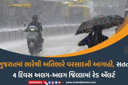 ગુજરાતમાં ભારેથી અતિભારે વરસાદની આગાહી, સતત 4 દિવસ અલગ-અલગ જિલ્લામાં રેડ ઍલર્ટ