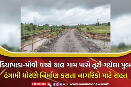 દેડિયાપાડા-મોવી વચ્ચે યાલ ગામ પાસે તૂટી ગયેલા પુલનું હંગામી ધોરણે નિર્માણ કરાતા નાગરિકો માટે રાહત