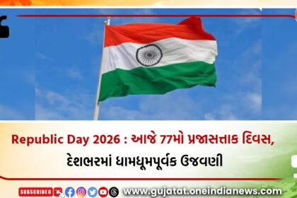 આજે દેશભરમાં ૭૭મો પ્રજાસત્તાક દિવસ અતિ ઉત્સાહ, ગૌરવ અને દેશભક્તિના માહોલમાં ઉજવાઈ રહ્યો છે. આ વર્ષના પ્રજાસત્તાક દિવસની થીમ “વંદે માતરમના 150 વર્ષ” રાખવામાં આવી છે, જે રાષ્ટ્રીય એકતા, સ્વતંત?...